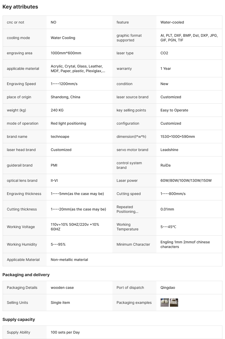 Industrial 1610 CO2 laser engraver/cutter (1600x1000mm) with 60W-150W options. Cuts 35mm acrylic, engraves wood/leather/fabric at 600mm/s. Features Ruida control, auto-focus & safety enclosure. Ideal for mass production. Get quotes!